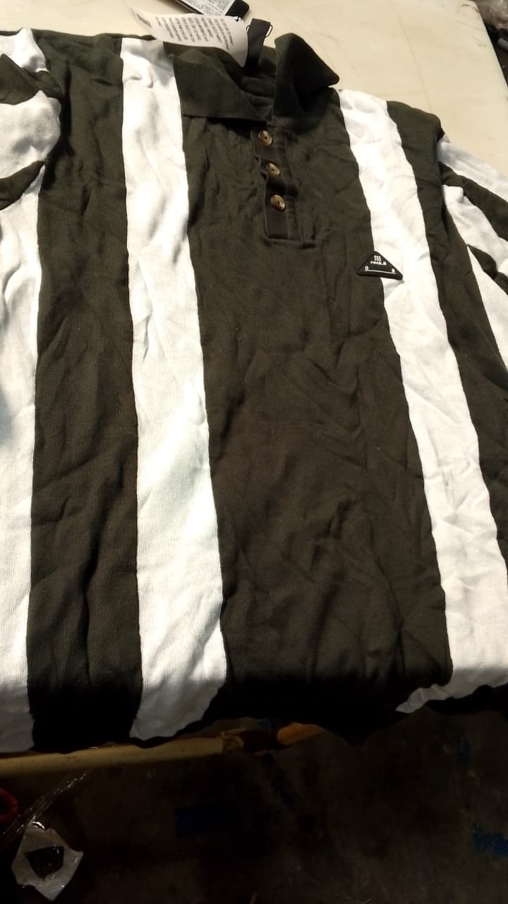 Rock It Men Green Stripe Collar Half Sleeve T Shirt Size M