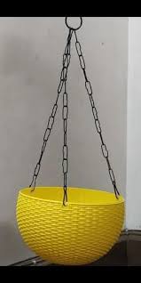 Round Plastic Hanging Pot For Home Yellow 2 N