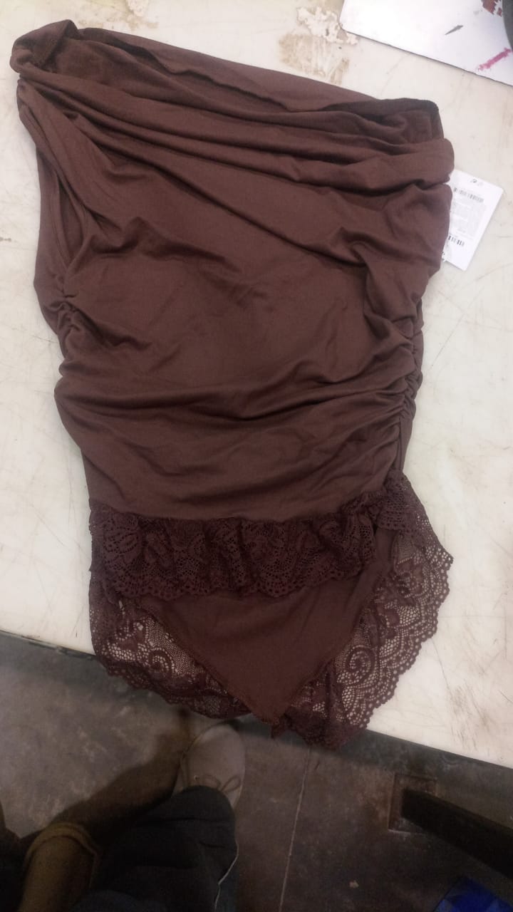 Savana Women Lace Trimmed Top Brown Colour Size S