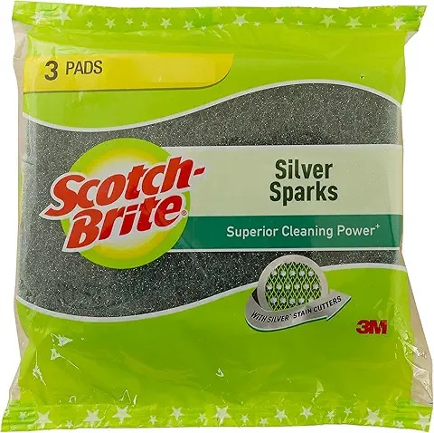 Scotch Brite Silver Sparks Scrub Pad Green 3 Pieces