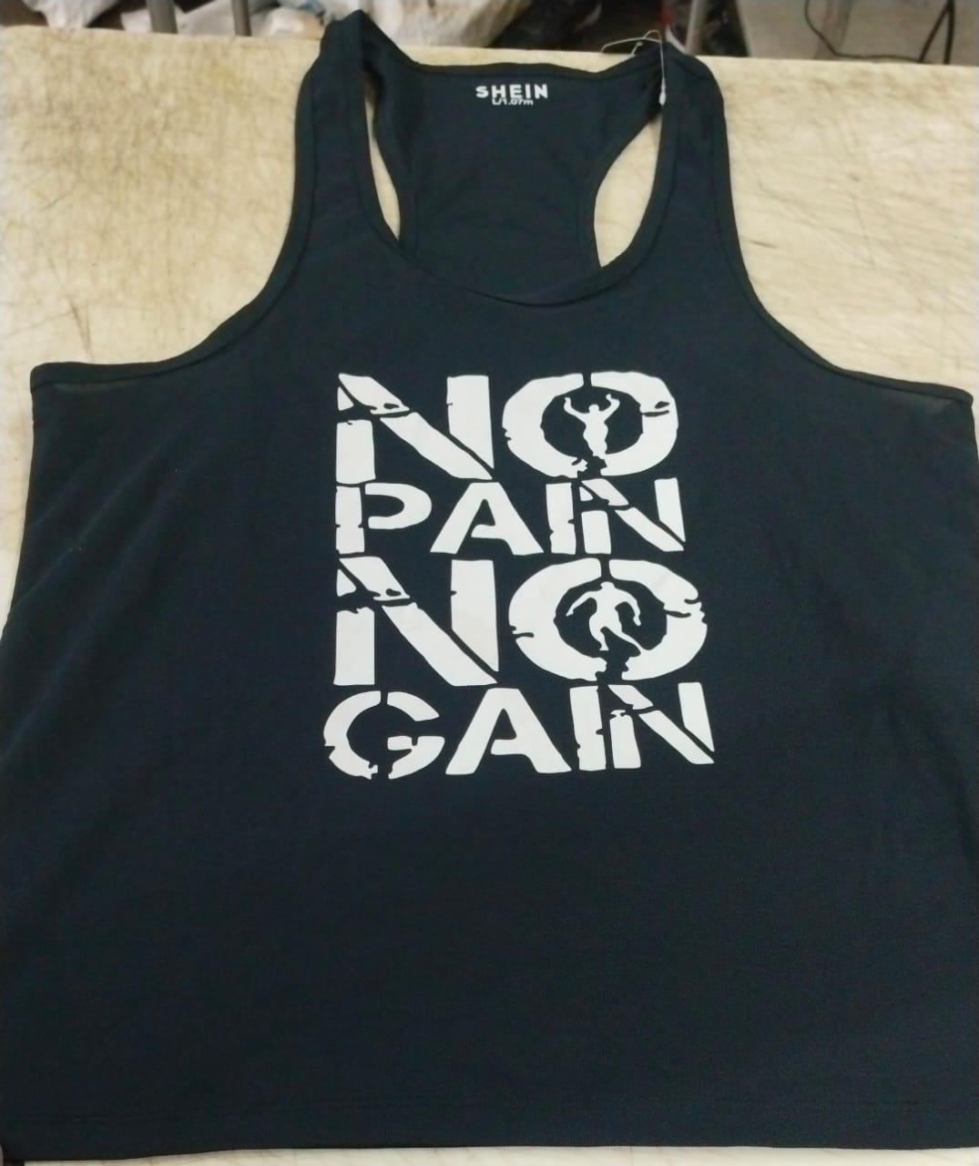 Shein Men Navy Blue No Pain No Gain Printed Colour T Shirt Size L