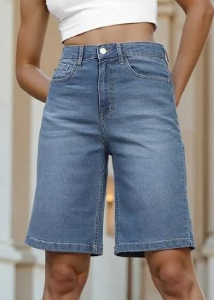 Shein WomenS Knee Length Denim Shorts Mid Blue Color Size 36