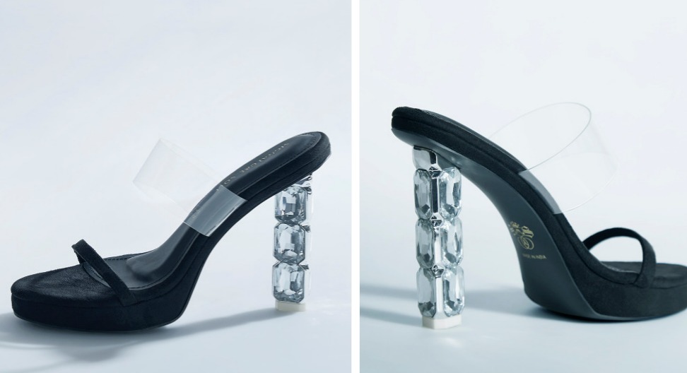 Signature Sole Signature Stone Embellished Sole Open Toe Block Heels Size 35 Black