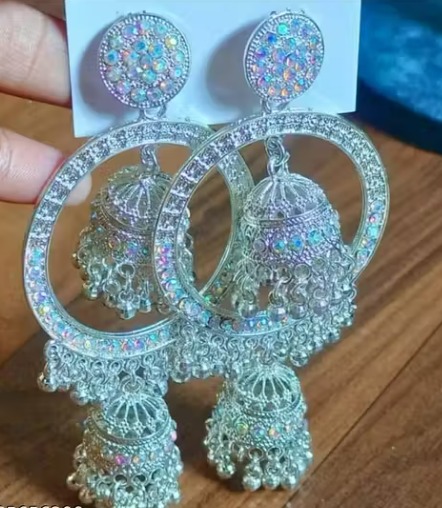 Silver Wedding Party Earrings Alloy Silver Chandbali Earrings