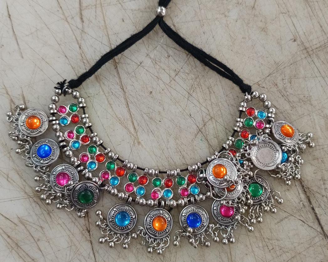 SilverToned Pink Green Enamelled Jewellery Set For Women
