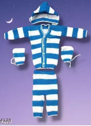 Skyblue And White Winter Clothing Set 4 Piece Pajama Shirt Cap Shocks For Cute Baby Size 0 To 3 Months