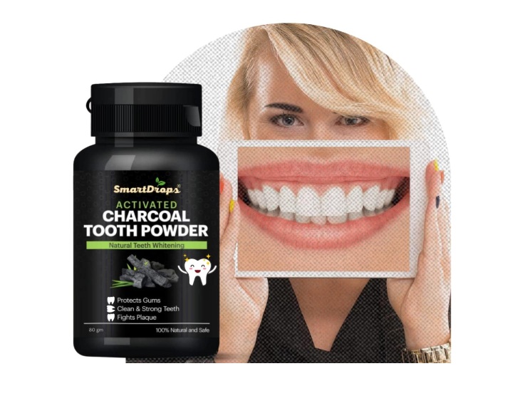 Smartdrops Activated Charcoal Teeth Whitening Powder Suitable For All types Teeth 80 gm