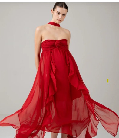 Sobella Red Ruffle Tube Dress With Rose Detail Size M