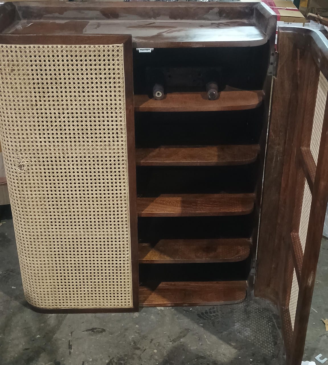 Solid Wooden Cane Shoe Rack Storage 2 Door Shelf Storage Entryway 5 Selfie