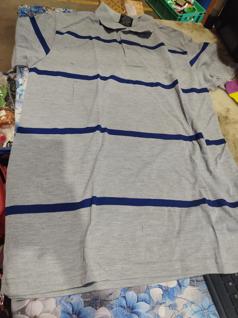 Squalo club Men Striped Polo Neck Cotton Blend Multicolor TShirt xl size grey colour