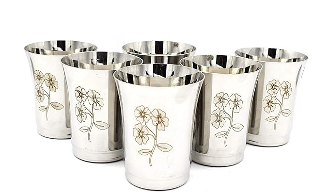 Stainless Steel Drinking Water Glass Flower Printed 500Ml Pack Of 5