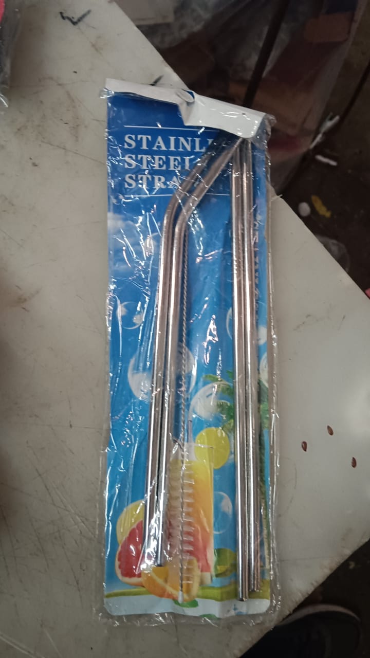 Stainless Steel Straws For Drinking With Cleaning Brush Silver