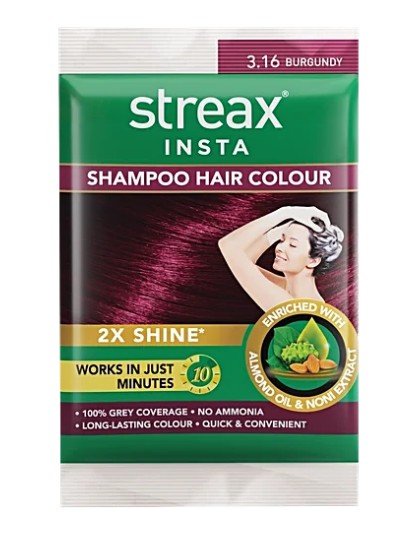 Streax Shampoo Hair Colour Almond Oil And Noni Extract 18 ml Burgundy
