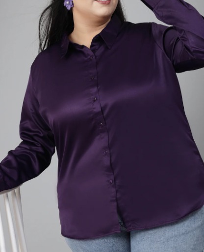 Style Quotient Plus Women solid wine satin formal shirt PURPLE COLOR SIZE S