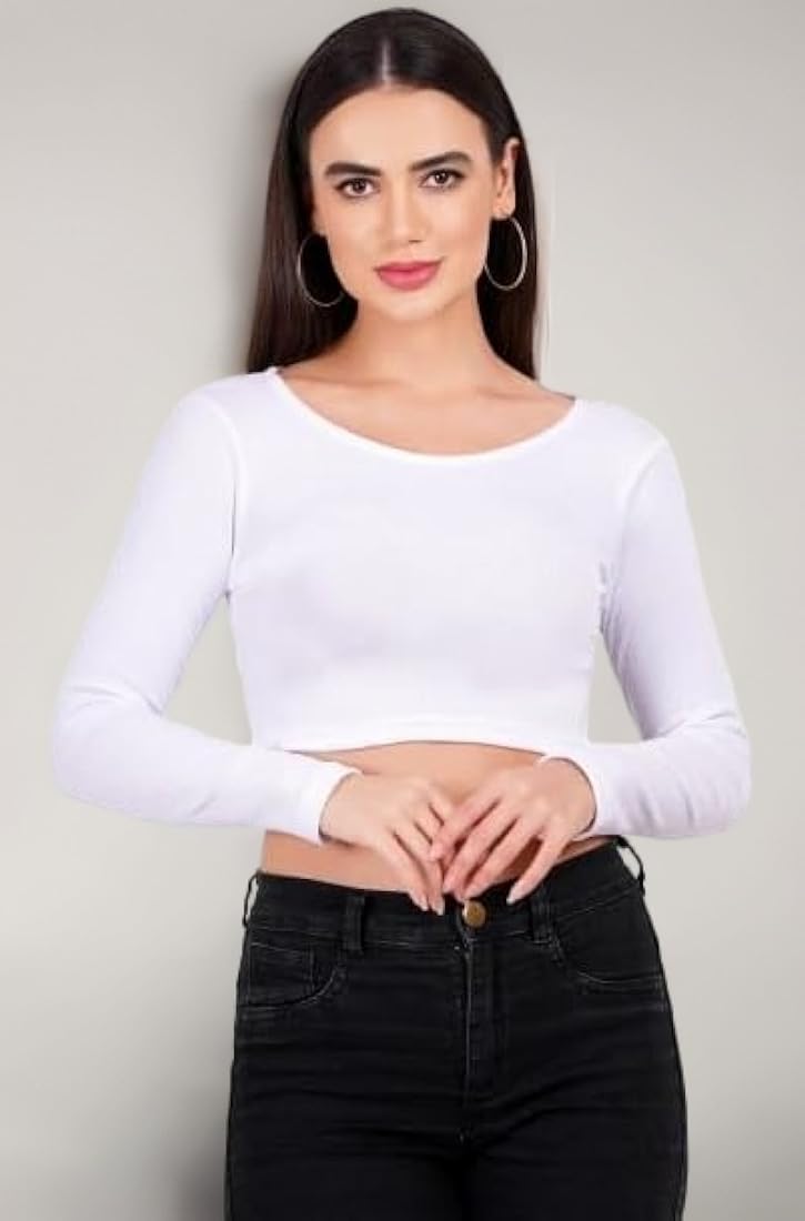 Sugarcane Fashion Korean Fancy White Color Women’S Full Sleeve Crop Top Size S