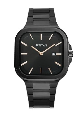 Titan Classique Slim Square Quartz Analog with Date Black Dial Black Stainless Steel Strap Watch for Men