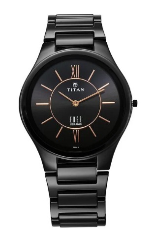Titan Edge Ceramic Quartz in Rich Black Dial Watch for Men Black Colour