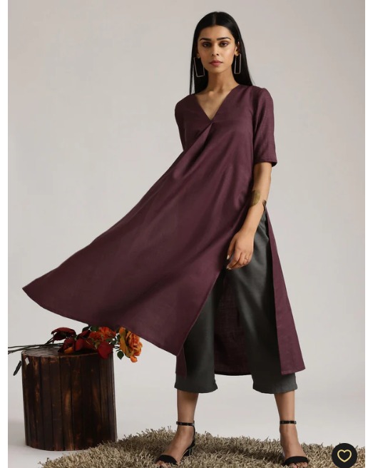 TrueBrowns Cotton Linen Purple Kurta Pant Set SIZE 2XL