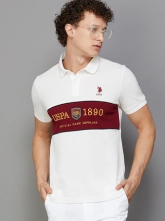 Us Polo Assn Men Printed Regular Fit Polo Shirt White Size L