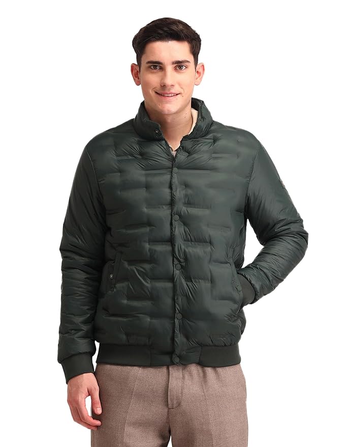 Us Polo Assn Mens Brown Solid High Neck Long Sleeve Casual Regular Fit Jacket Green Size M