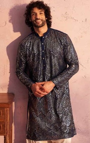 Vastramay Men Embroidered Regular Fit Long Kurta With Mandarin Collar Size 42