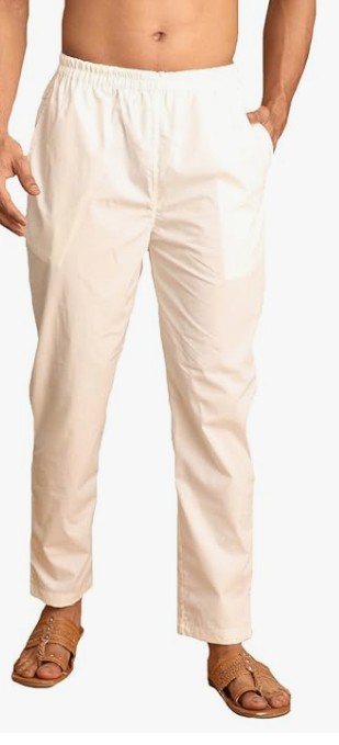 VASTRAMAY Mens Cotton Pant Style Cream Pyjama