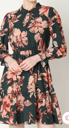 VERO MODA Floral Printed Fit AND Flare Dress SIZE XL Green