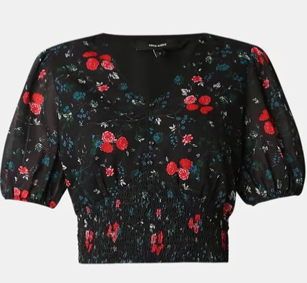 VERO MODA Women Floral Print Regular Fit Top with Smocked Waist SIZE L Black