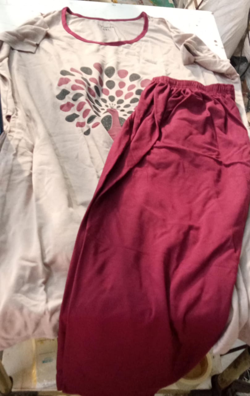 Vrinda Maroon With Beige Colour Long T Shirt With Pajama For Women Size 5Xl