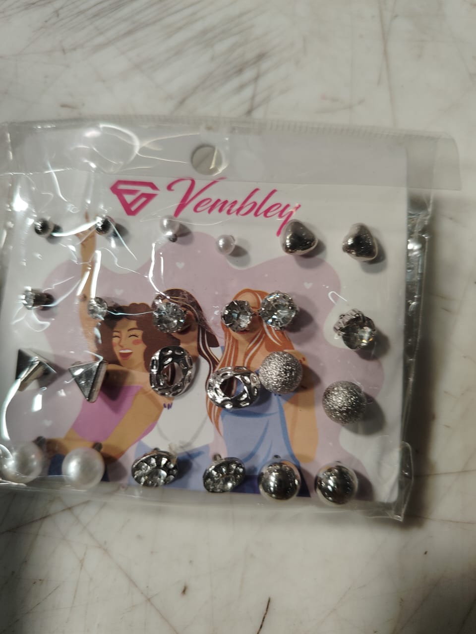 Wembley Combo Of 12 Charming Silver Plated Stone And Pearl Stud Earrings