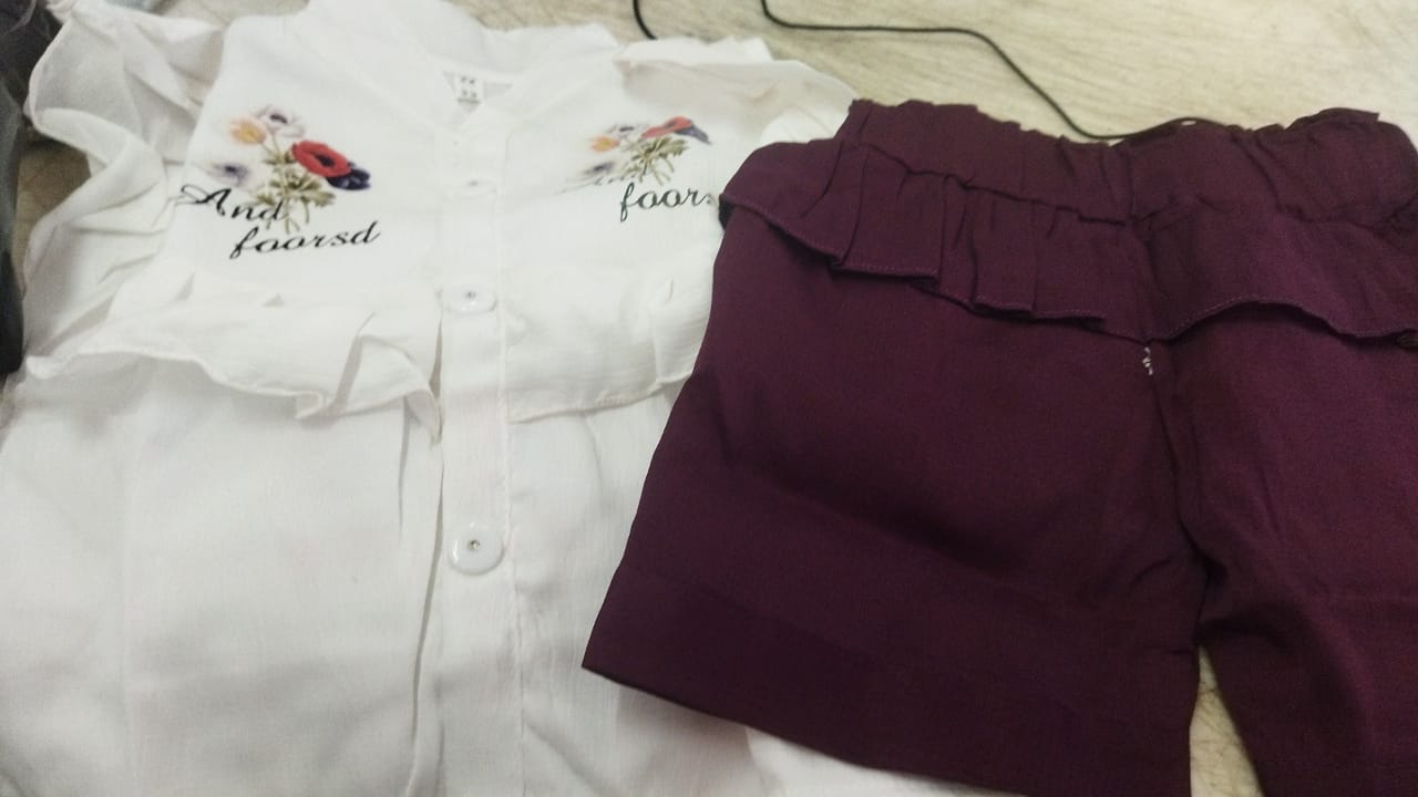 White And Purple Color Top With Shorts For Kids Girls Size 4 Y