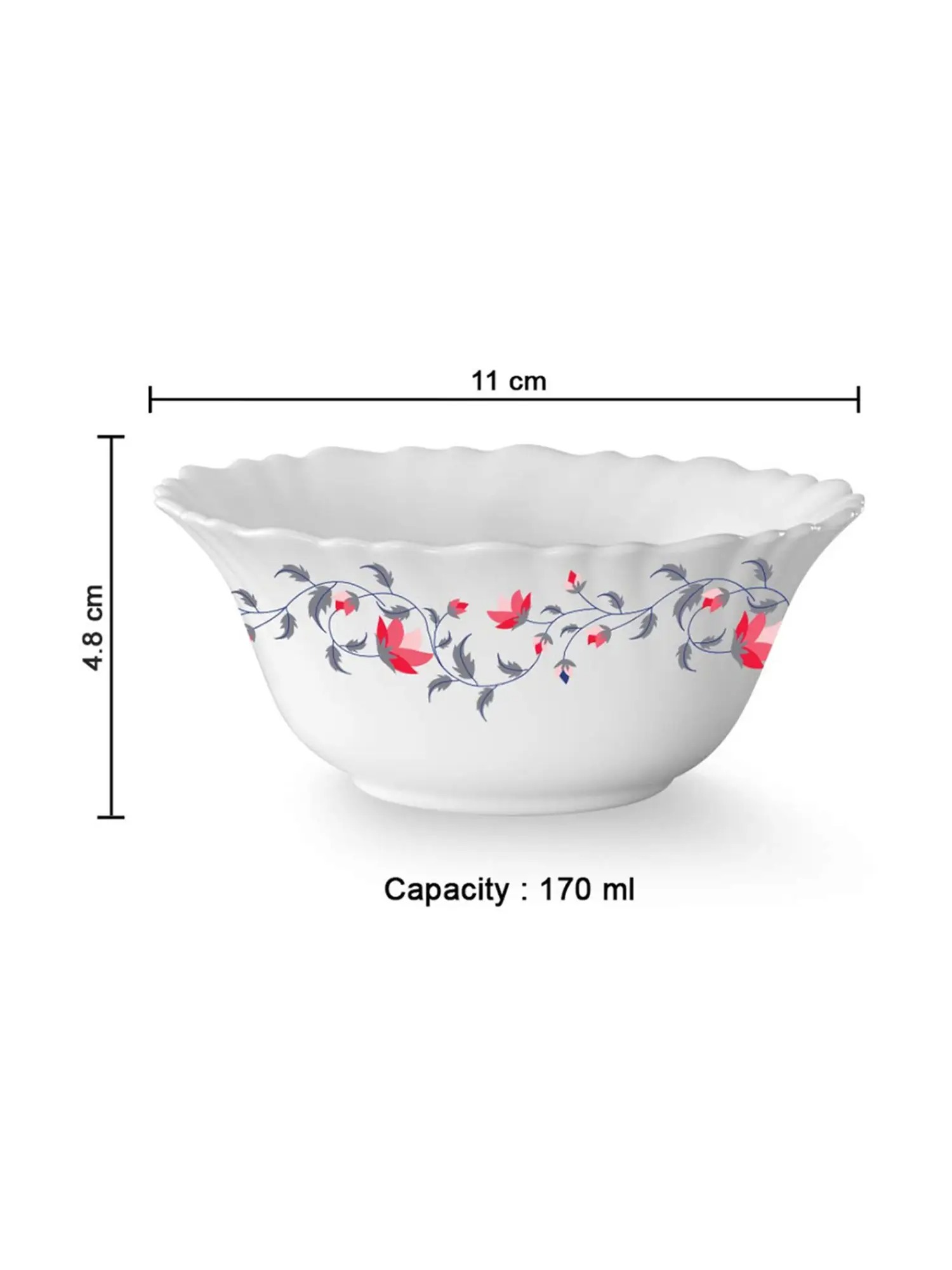 White Color Borosil Opalware Floral Bowl Set Of 4