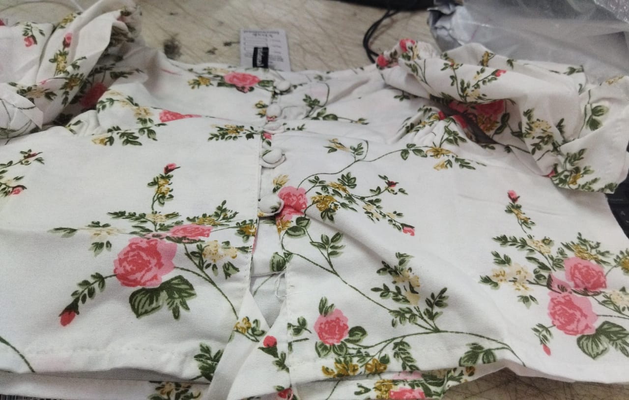 White Color Flower Printed Women Top Size M