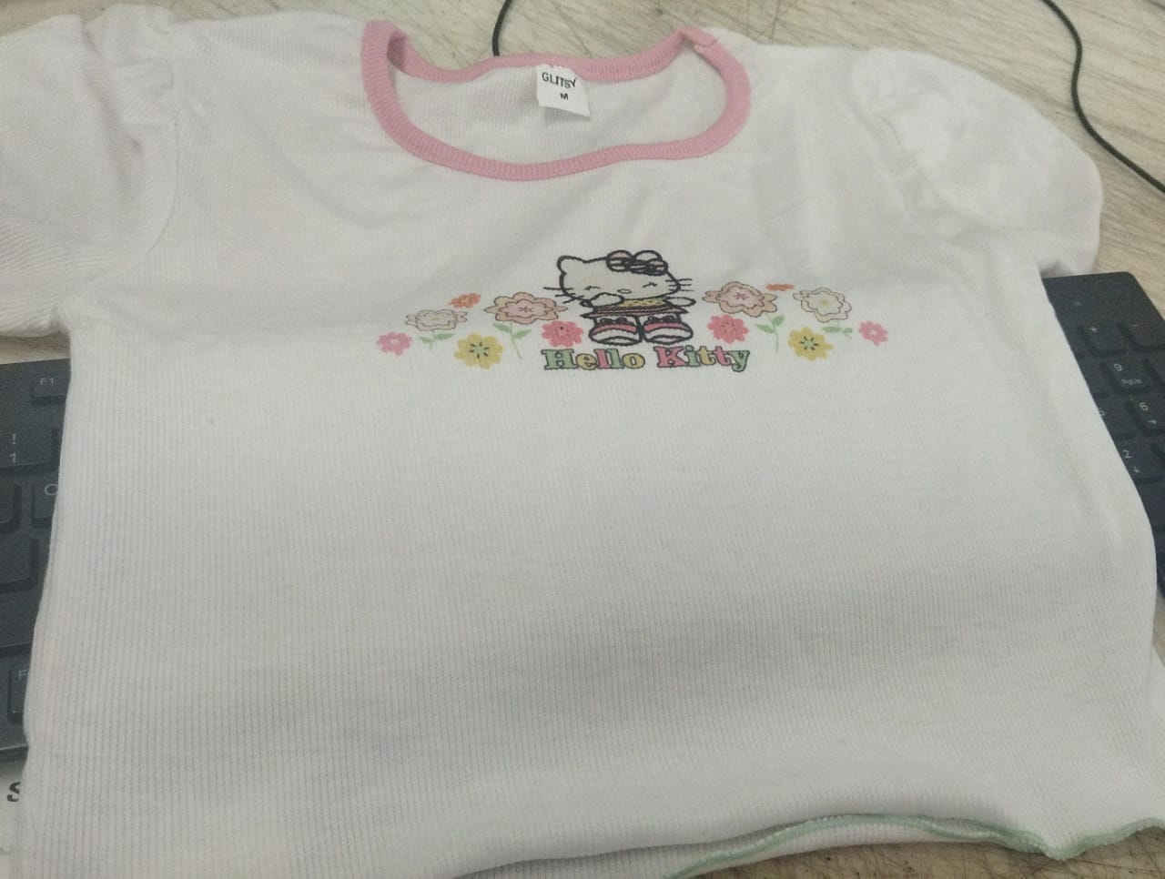 White Color Hello Kitty Printed Girls Crop Top Size M