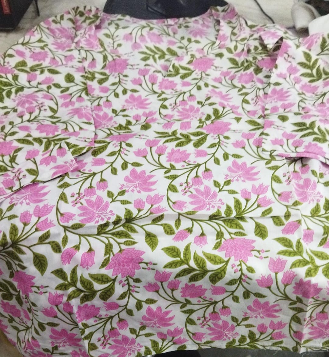 White Color Pink Printed Women Short Kurti Size L