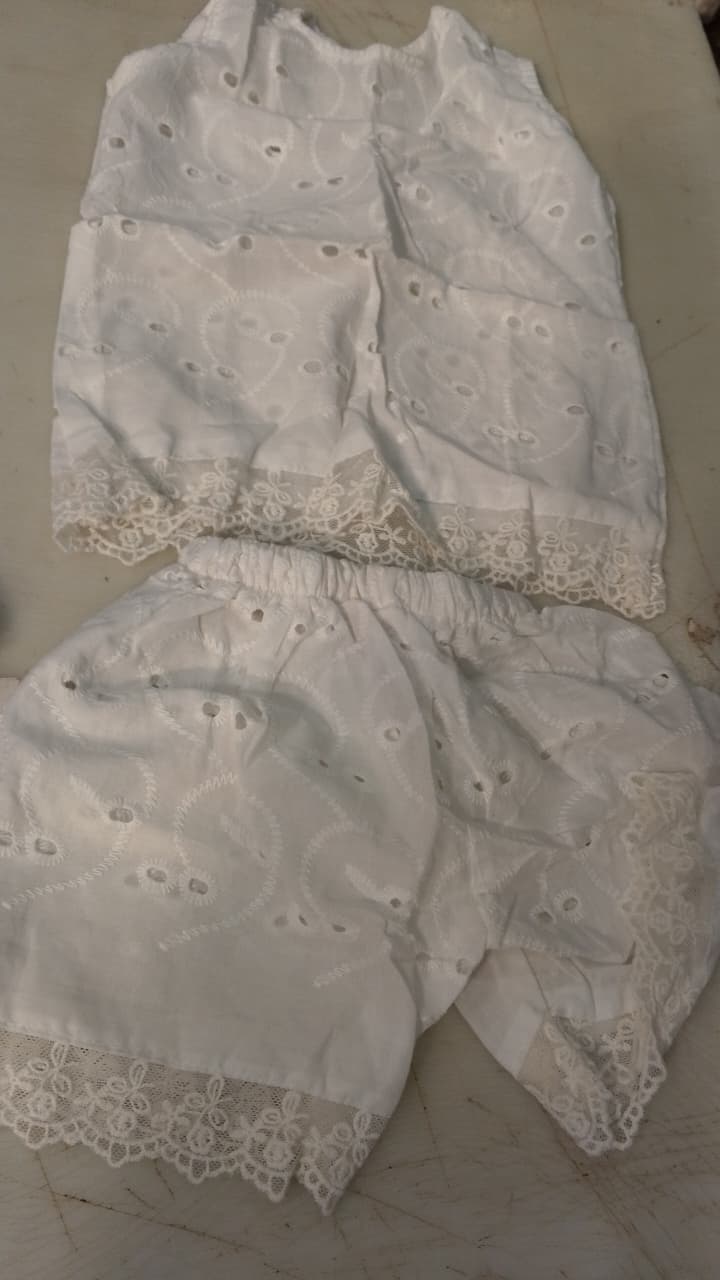 White Embroidery Work Kurti With Shorts For Kids Size 1 Year