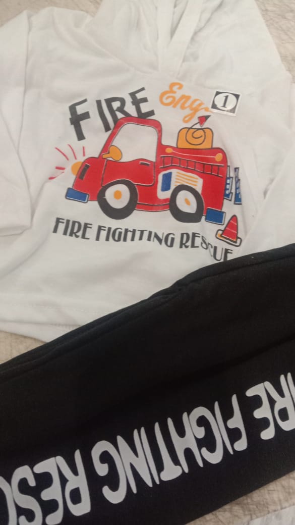 White Hoodie T Shirt And Black Trousers For Boys Kids For 6 To 7 Month
