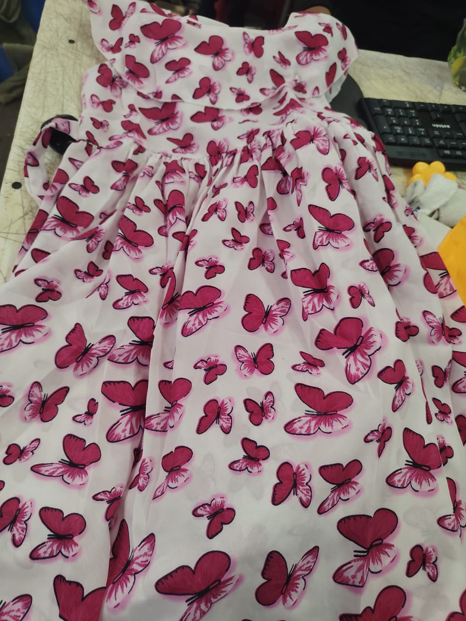 White Magenta Butterfly Printed Dress For Kids Girls Size 10 To 11Y