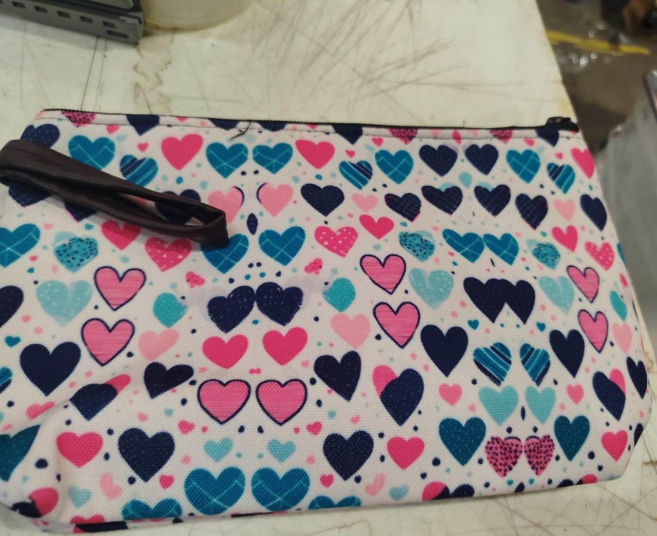 White Printed Multi Purpose Cosmetics Bag Travel Toiletry Or Carrying Purse Zipper