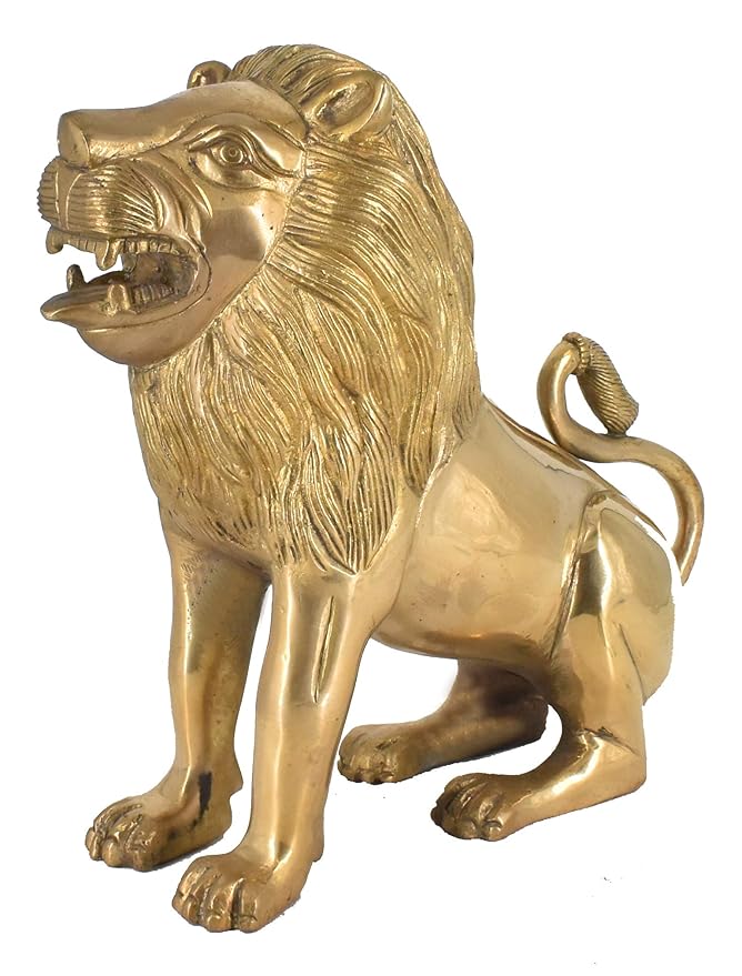 White Whale Large Gold Lion Brass Statue Showpiece Sculpture Home Decor Feng Shui Gift
