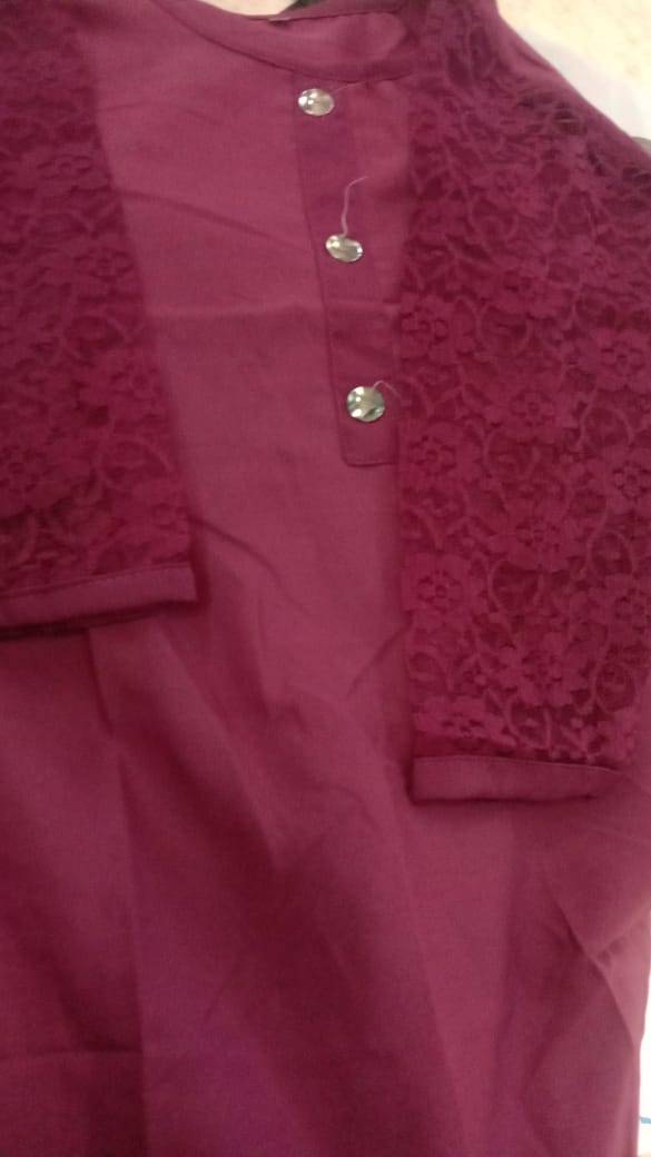 Wine Color Net Sleeves Kurti For Women Size S