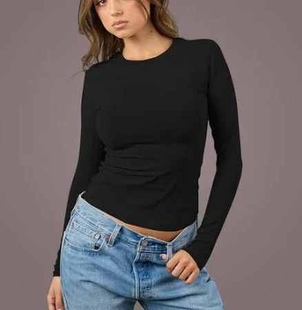 Women Black Color Full Sleeves Top Size M