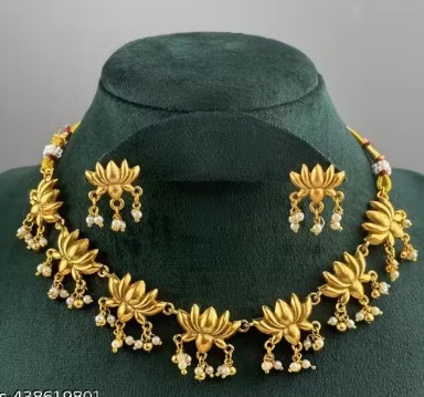 Women S Designer Necklace Set With Earring S Lotus Motif Gold Unique Traditional Jewellery Set