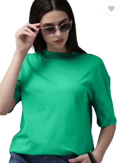 Women Solid Round Neck Cotton Blend Green TShirt green L size