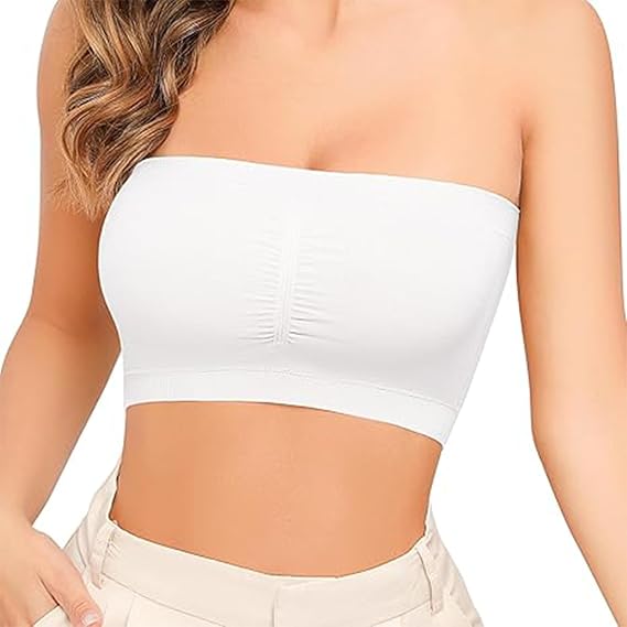 Women Strapless Padded Bra Seamless Wireless Tube Top Bra White Color Size 32