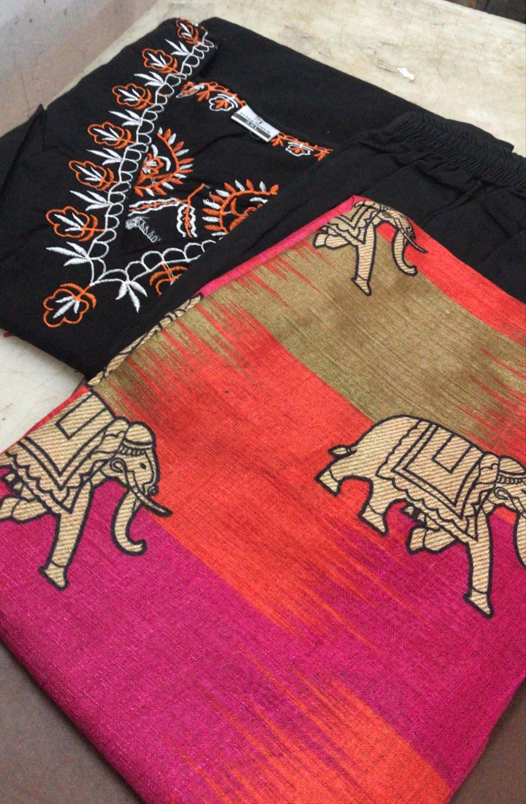 Womens Black Short Kurti With Pajama And Dupatta Size 3Xl