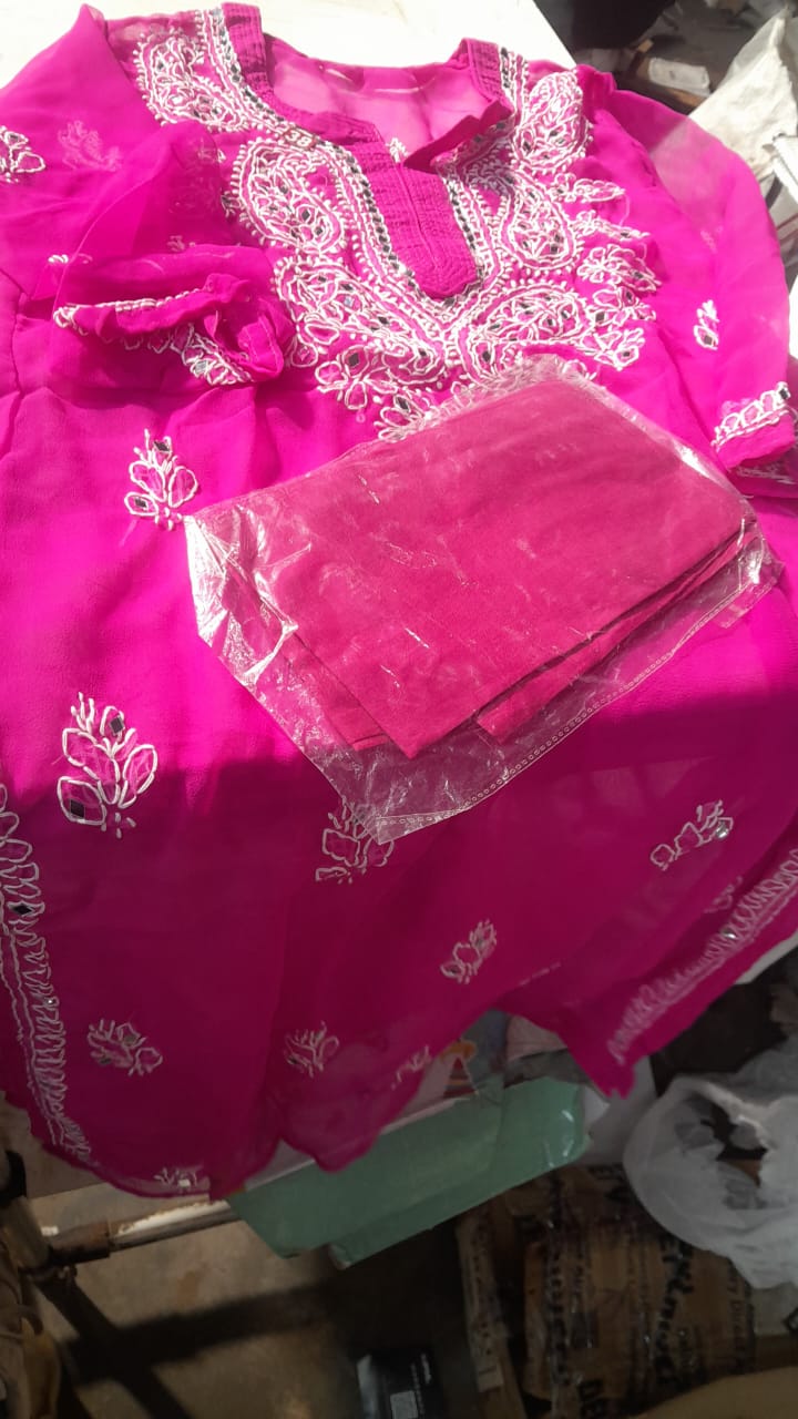 Womens Georgette Mirror Kurti With Undershirt Pink Size M
