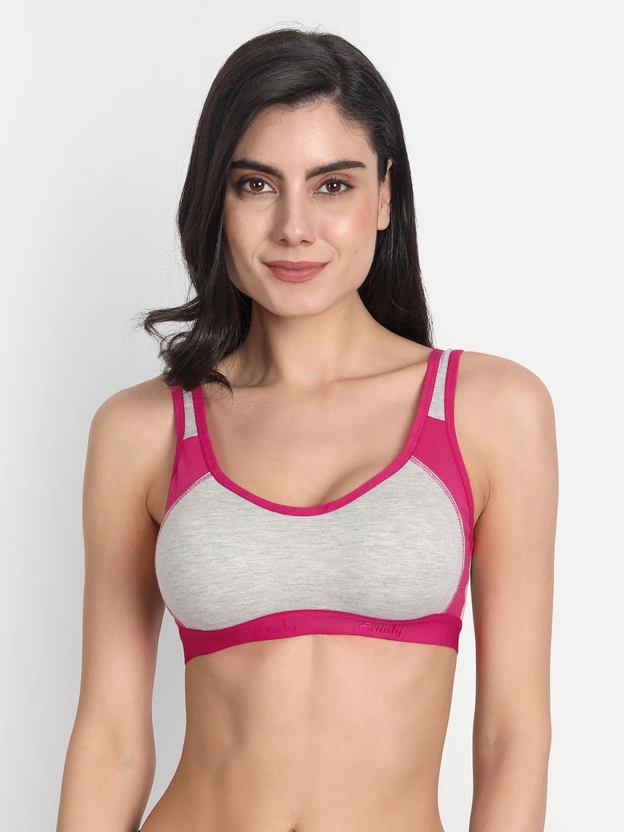 Womens Non Padded Sports Bra Grey Pink Size S