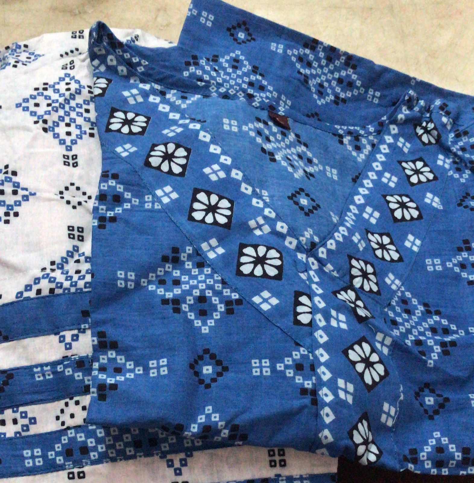 Womens Pure Cotton Printed Kurti With Pant Dupatta Set Blue White Size L