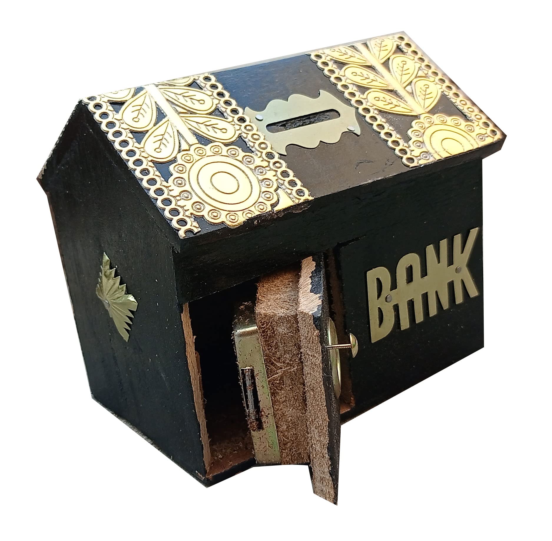Wooden Hut Shaped Black Money Bank Piggy Bank Gullak